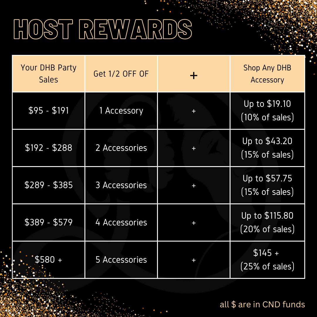 - If guest books a DHB Gem Party within 30 days from yours, receive 50% off any accessory