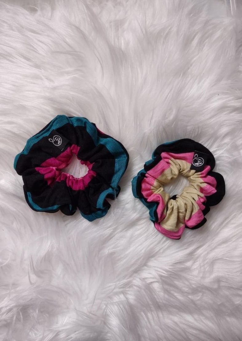 All our scrunchies are medium size and have a strong but stretchy elastic. These scrunchies are good for all hair thicknesses and lengths.