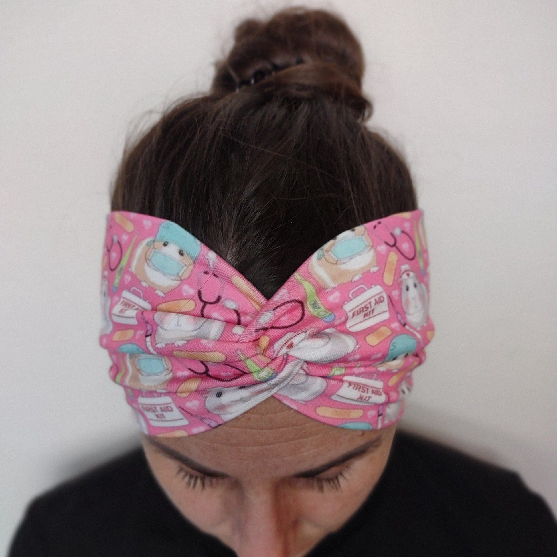 This fabric is the most popular fabric for headbands as it has a fuzzy soft feel, and is known to not give headaches, earaches and makes it extra comfortable to wear all day.